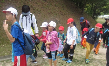 お兄さんお姉さんが、小さいお友達と手をつないで、